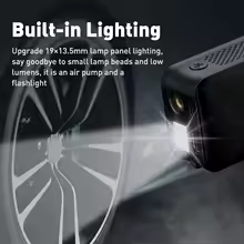 Equipada com lanterna embutida, essa bomba de ar garante visibilidade em locais escuros, seja para trocar um pneu à noite ou para iluminar sua trilha de aventura.