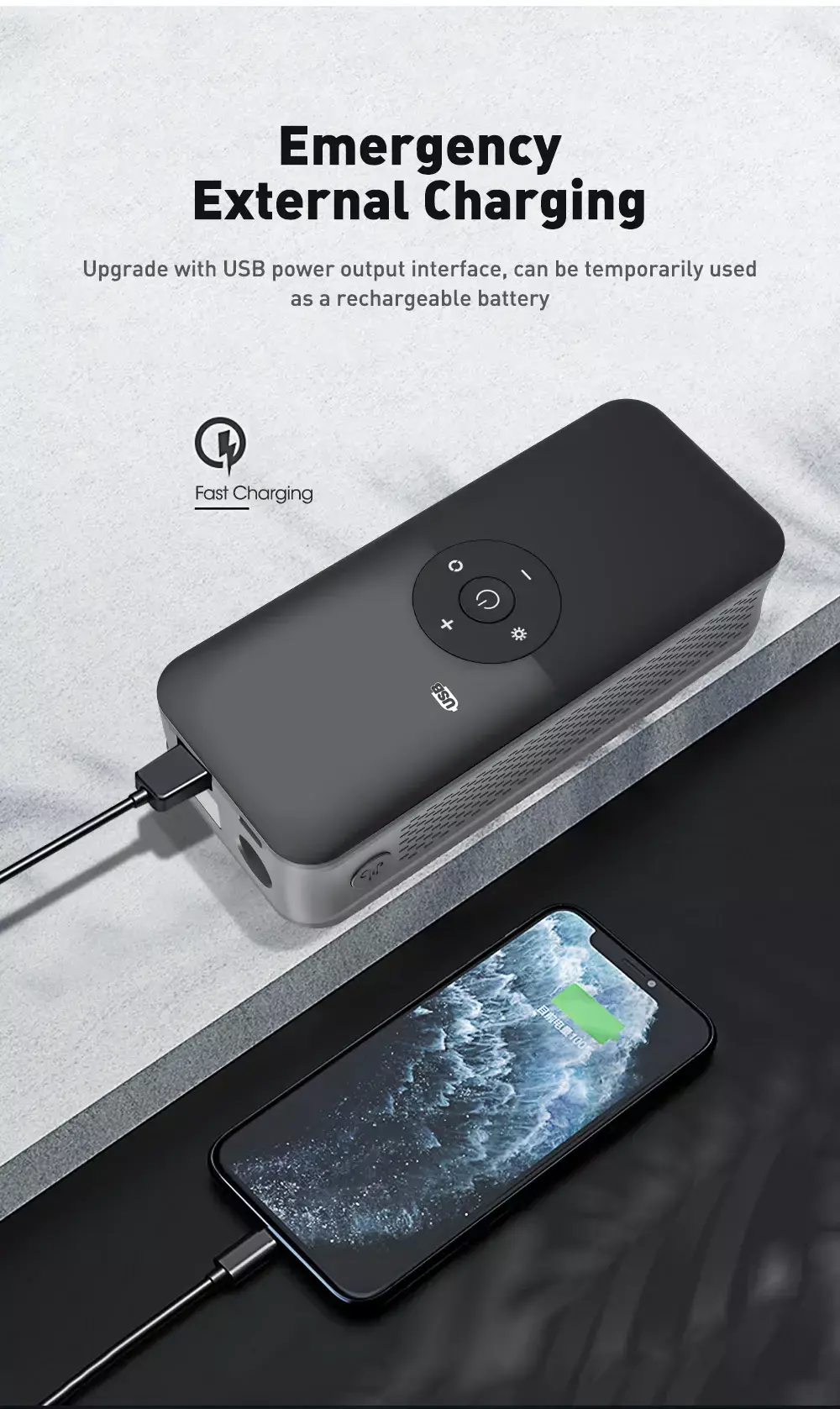 Além de encher pneus, o Mini Compressor também funciona como PowerBank, garantindo que seu celular nunca descarregue em situações de emergência.